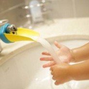 I bambini amano giocare con l’acqua: trasparente, bagnata e inafferrabile, una vera stregoneria! Regolarmente il bidet viene colonizzato ed utilizzato dai più piccoli per giocare e sperimentare, ma anche per iniziare a lavarsi mani, denti e viso da soli, alla conquista della propria autonomia. Affinché i bambini utilizzino il lavandino, è necessario munirsi di uno scalino di questo tipo. Nonostante il rialzo, spesso il rubinetto risulta troppo distante dalle manine dei bambini ed è quindi indispensabile prenderli in braccio. Ecco quindi una soluzione per adattare il lavandino a misura di bambino: Aqueduck di Peachy, un estensore che consente ai bambini di raggiungere il getto dell’acqua da soli. Aqueduck è progettato per essere inserito in rubinetti di misure standard; si applica e si rimuove con semplicità, pigiandolo lateralmente, in modo da garantire una facile pulizia. Al momento risulta acquistabile su Amazon.com (segnalatemi se acquistabile direttamente in Italia). fonte immagini: www.shelterrific.com...