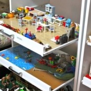 Una cassettiera per i giochi in cui organizzare piccoli arredi e disporre personaggi e animali della fattoria. Una soluzione per avere bene in vista i soggetti preferiti e che consente ai bambini di scegliere, ogni volta, “a che piano” intrattenersi senza rovesciare sul pavimento decine di pezzi di giocattoli. Questo mobile contenitore è un casellario/portadocumenti da ufficio, con cassetti estraibili, ben distanziati e quasi privi di fronti perimetrali. E’ possibile predisporre anche una cassettiera portacorrispondenza (che ha i bordi maggiormente ridotti rispetto a una cassettiera standard) eliminando alternativamente qualche cassetto in modo da lasciare un’altezza sufficiente per posizionare i giochi. Per caratterizzare ogni ambientazione basta decorare il fondo del cassetto con carte adesive di differenti trexture: dal parquet per il pavimento all’azzurro del lago, al verde del prato al marrone del fango e…il gioco è fatto! fonte...